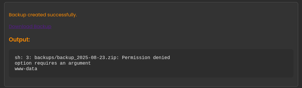 Con esa contraseña probamos login en la web con el usuario amanda y accedimos a un panel administrativo con un botón para generar un backup.