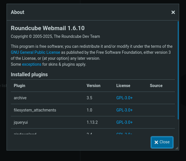 La versión que muestra es Roundcube Webmail 1.6.10.