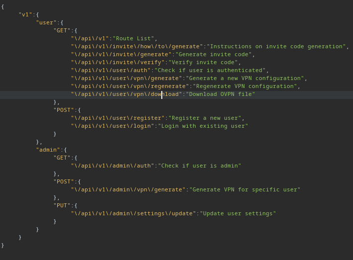 Con privilegios admin, probamos si podemos ejecutar comandos arbitrarios usando la API de generación de VPN, que aceptaba parámetros sin filtrar: